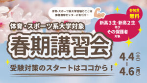 私立大学志望の高卒生を対象とした総合型選抜コースです!【日本体育大学・順天堂大学・国士舘大学・大阪体育大学】 高卒生対象 総合型コース 開講予告! 高校卒業後でも総合型選抜は受験可能です。 私立大志望 高卒生対象 202 […]