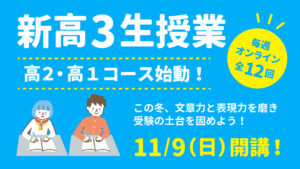 「文章力」と「表現力」をこの冬に磨く 高校1・2年生を対象に、総合型選抜を見据えた「文章表現の基礎授業(全12回)」を開講します。単発の説明会だけでは受験への意識を高めにくいため、毎週の継続授業で基礎を積み重ねていきます […]