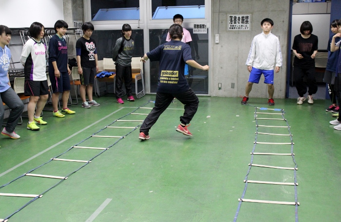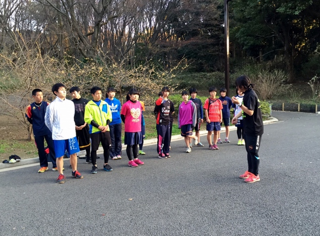 翌日に、前日の室内トレーニングをベースに屋外で実践練習(この日は坂道を勾配を利用)