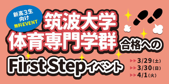 筑波大学体育専門学群の受験を検討している新高校3年生・新高校2年生に向けて、最新の入試情報をお伝えします。また受験生が不安な保体論述試験についての体験授業や、実技②をどの種目にすれば良いか不安になっている人に向けて実技②適性判定(東京会場のみ)を開催します。このイベントをきっかけに先輩方と同じように現役で筑波体専の合格を掴みましょう!