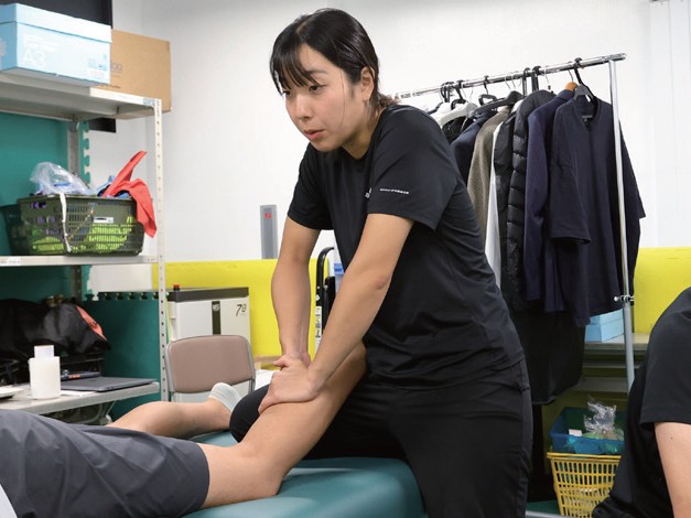 タイシンでは、アスレティックトレーナーの資格やストレングス&コンディショニングの資格を保持したトレーナー陣による週2回のケアサポートを行っています(予約制)。日々のコンディショニングから筋力トレーニングの提供、リコンディショニングまで多岐にわたってともに合格に向けて戦ってくれます。