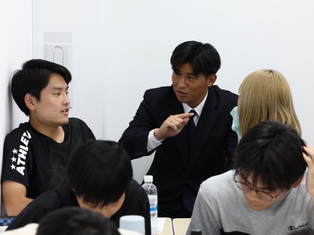 JFL等で積んだサッカーのプロとしての経験をもとに、自身が経験した浪人生活も活かしながら一人ひとりと向き合う。