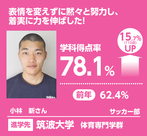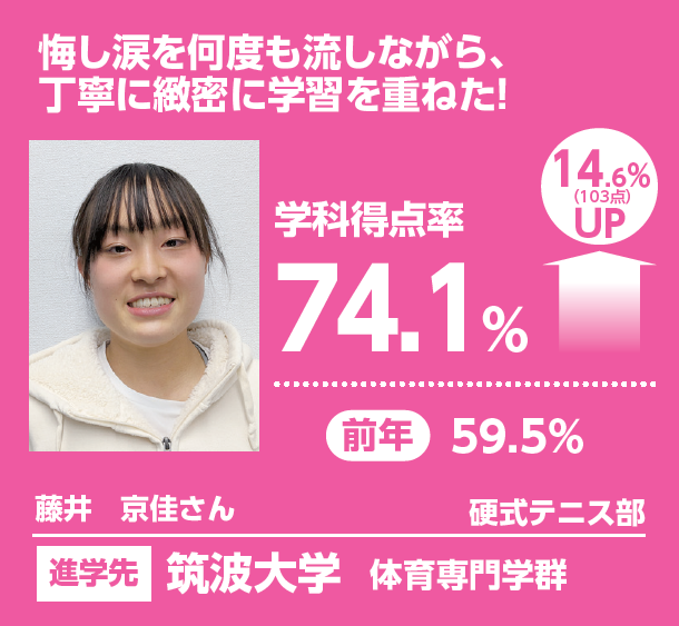 | 筑波体専に再チャレンジ | 志望校をランクアップし 筑波に挑戦 |